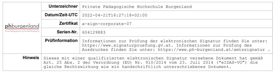 Amtssignatur an der Privaten Pädagogischen Hochschule Burgenland